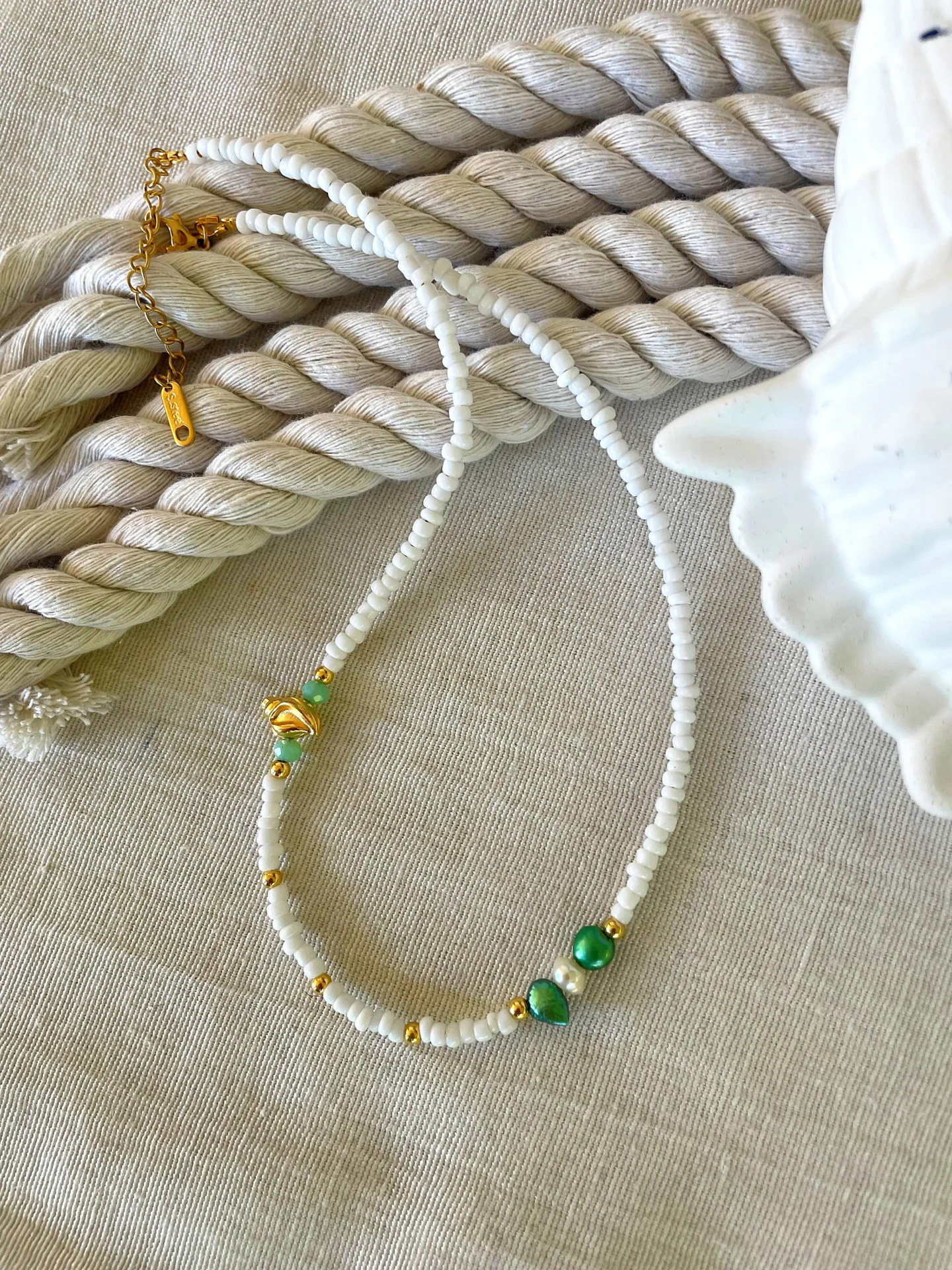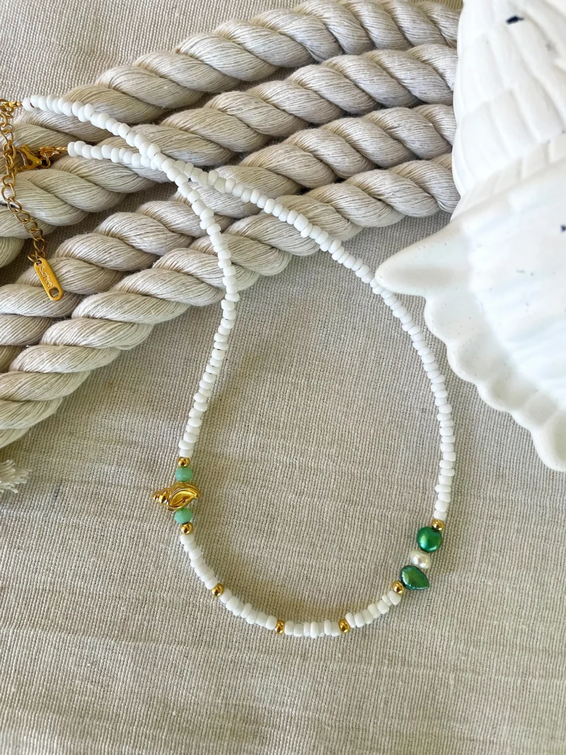 Χειροποίητο κολιέ καλοκαιρινό με χάντρες, μαργαριτάρια γλυκού νερού.