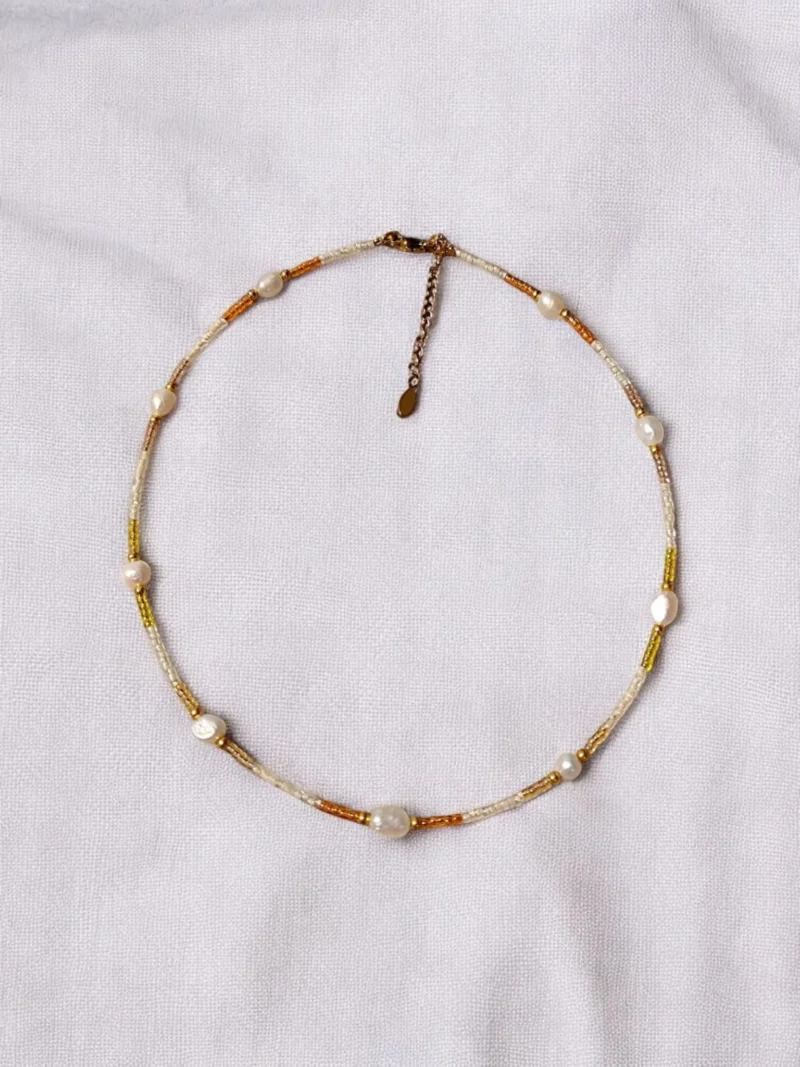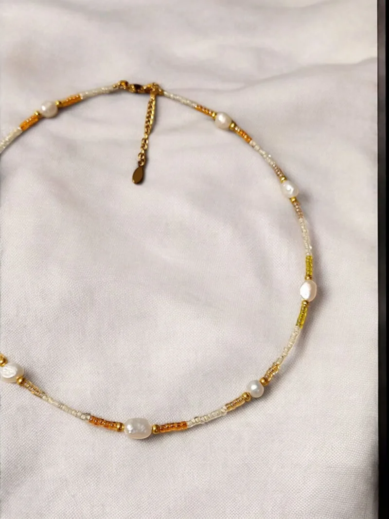 Χειποποιητο κολιε με χαντρες/Μαργαριταρια γλυκου νερου Κουμπωμα απο ανοξειδωτο ατσαλι 40εκ
