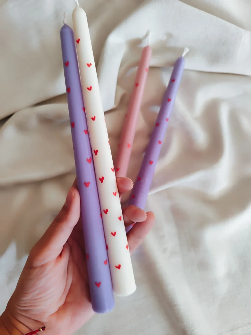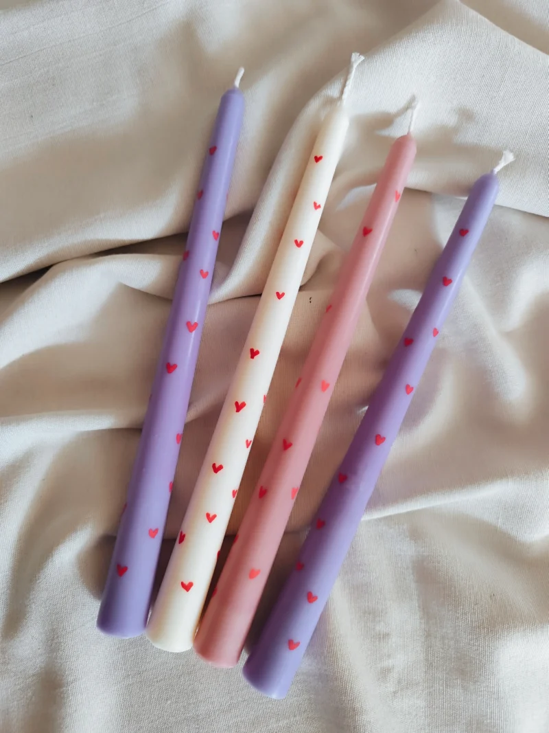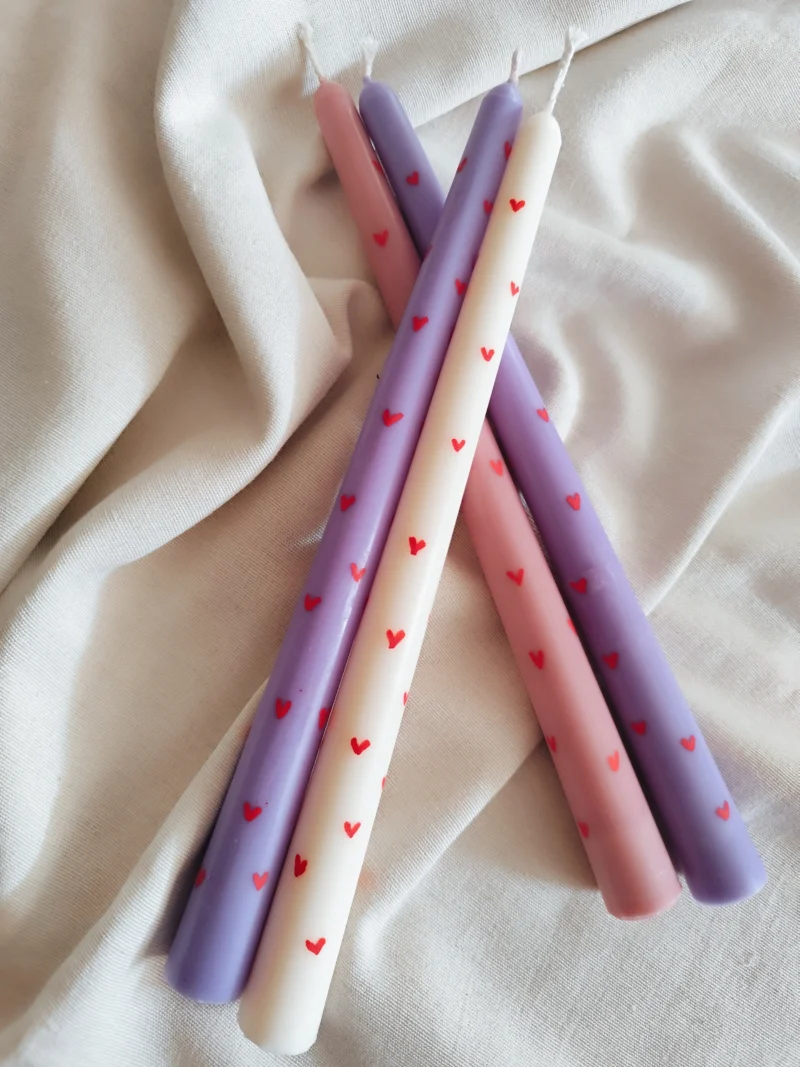 Χειροποίητη αρωματική λαμπάδα ζωγραφισμένη με καρδιές