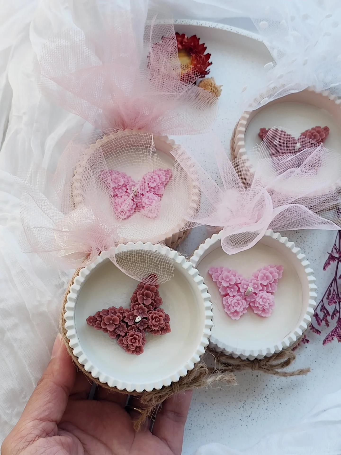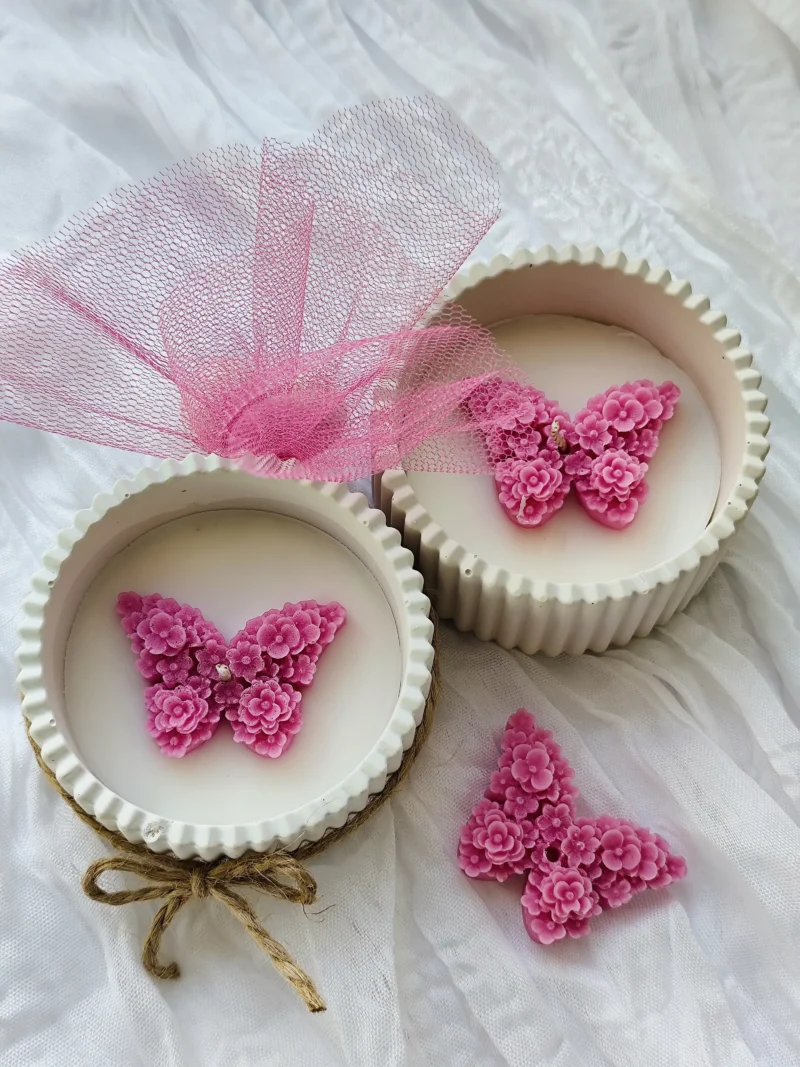 Χειροποίητη Μπομπονιέρα Κερί Σόγιας – Πορσελάνη & Διακοσμητική Πεταλούδα