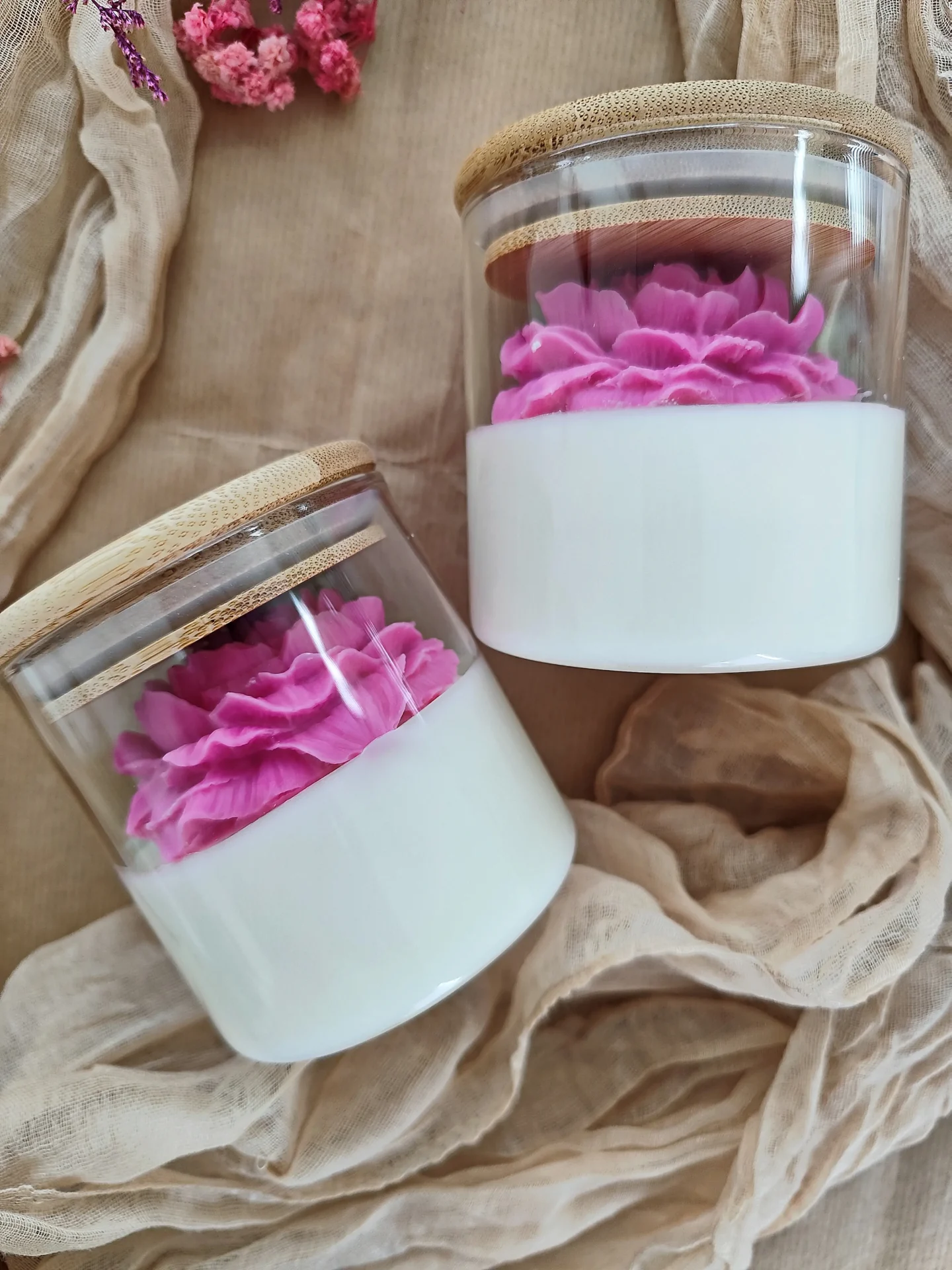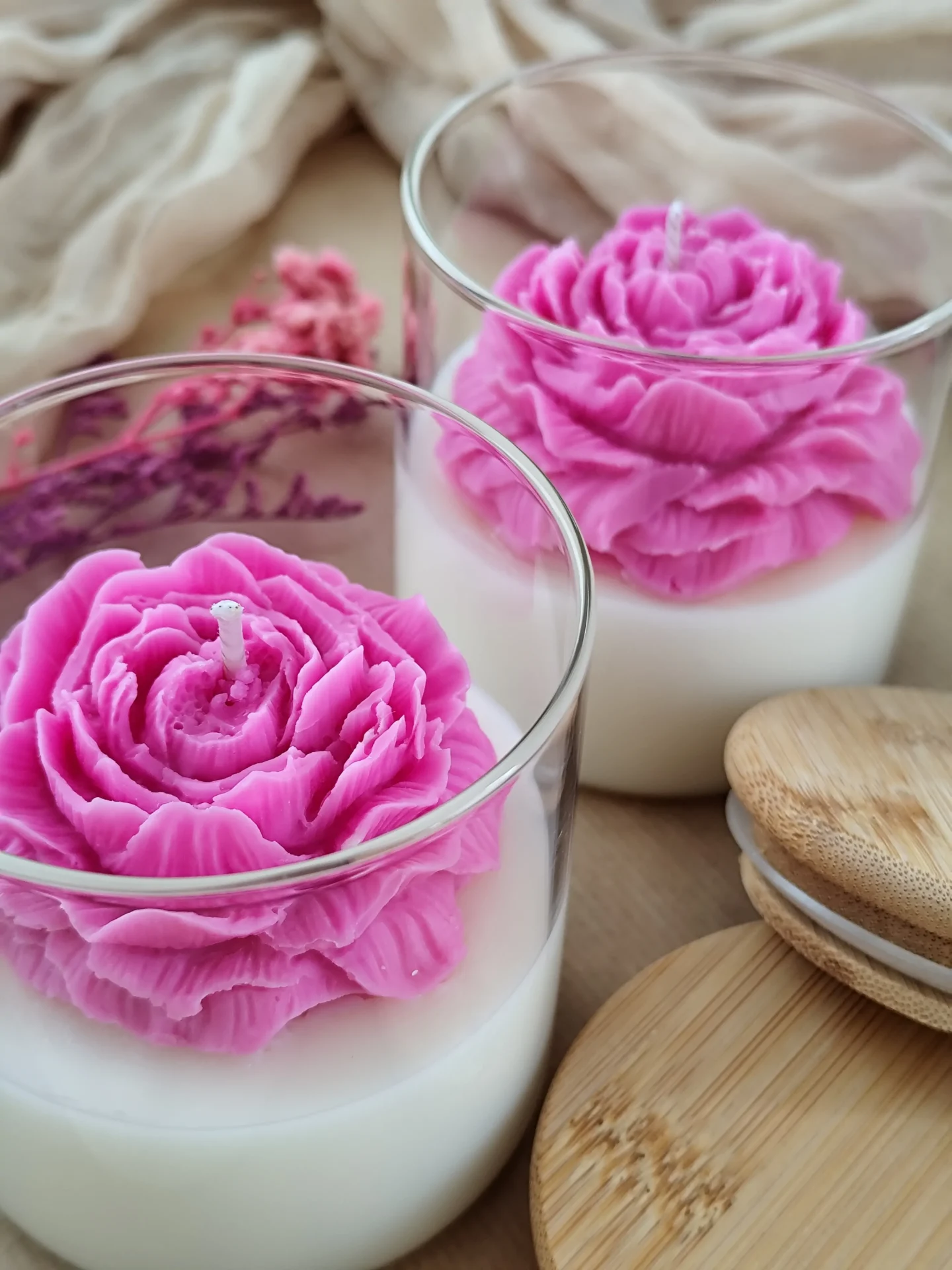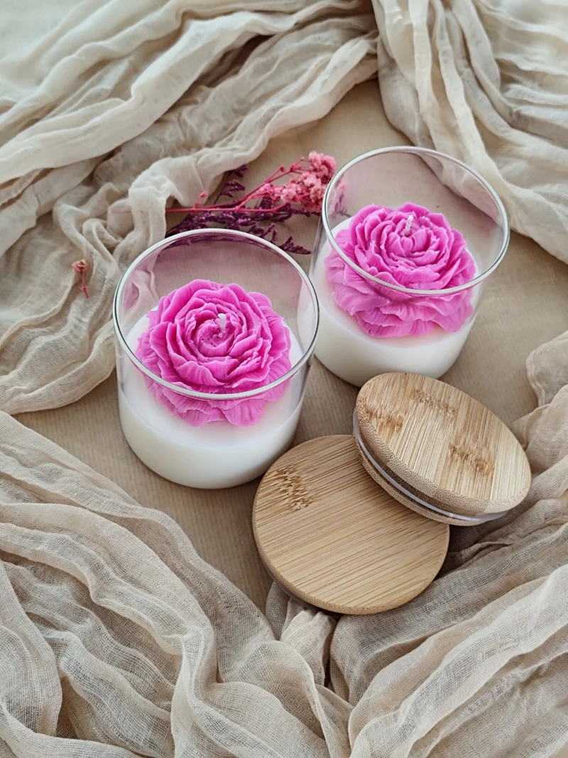 Παιώνια Αρωματικό Κερί Σόγιας σε Γυάλινο Δοχείο με Ξύλινο Καπάκι