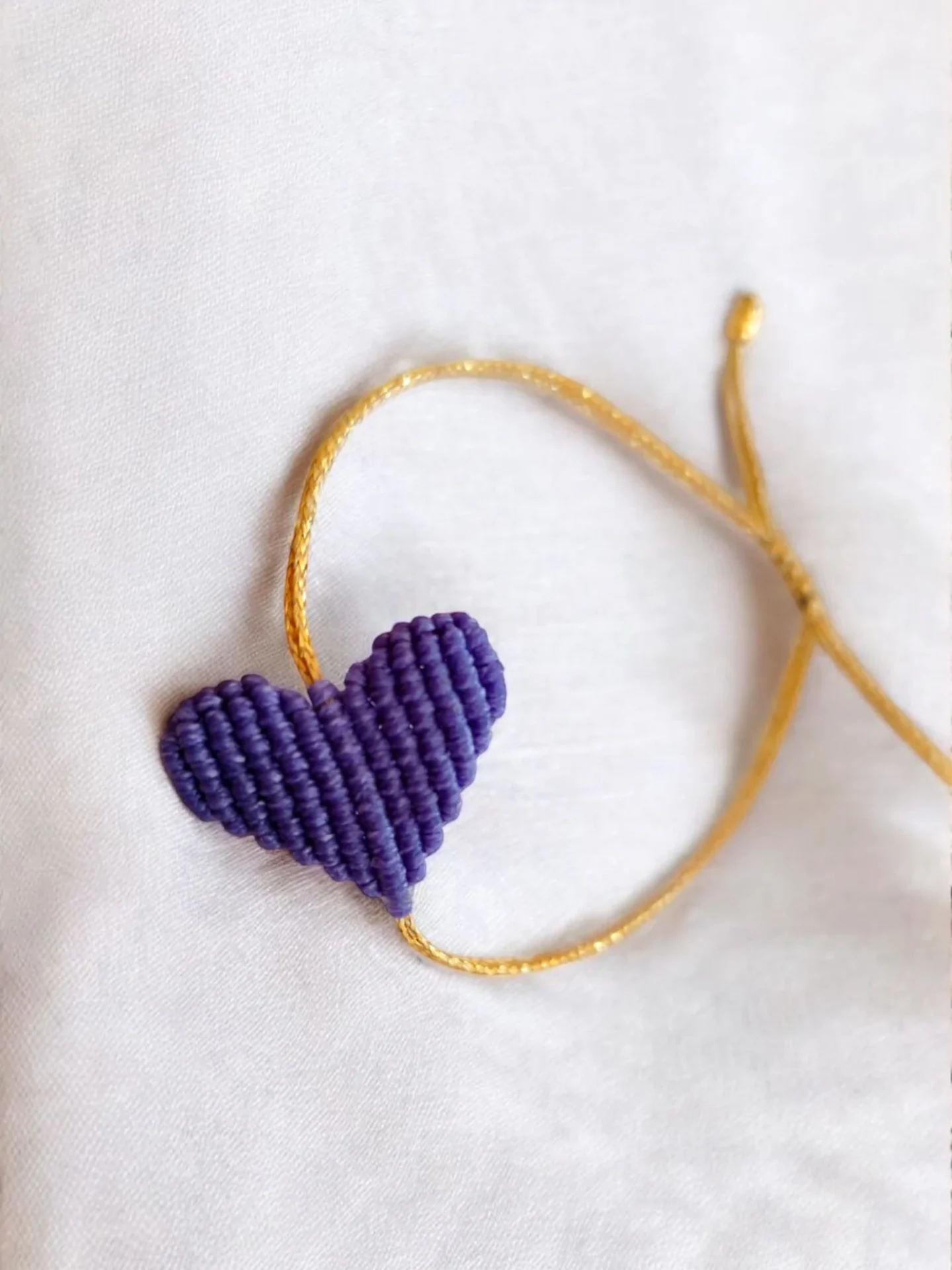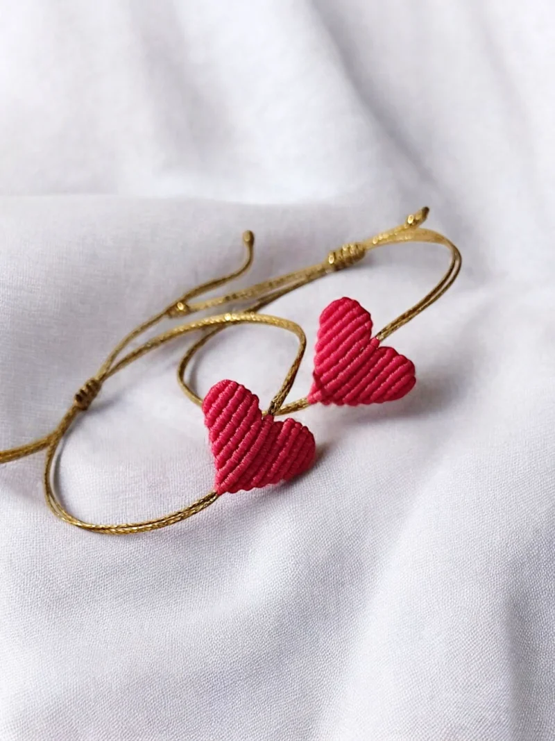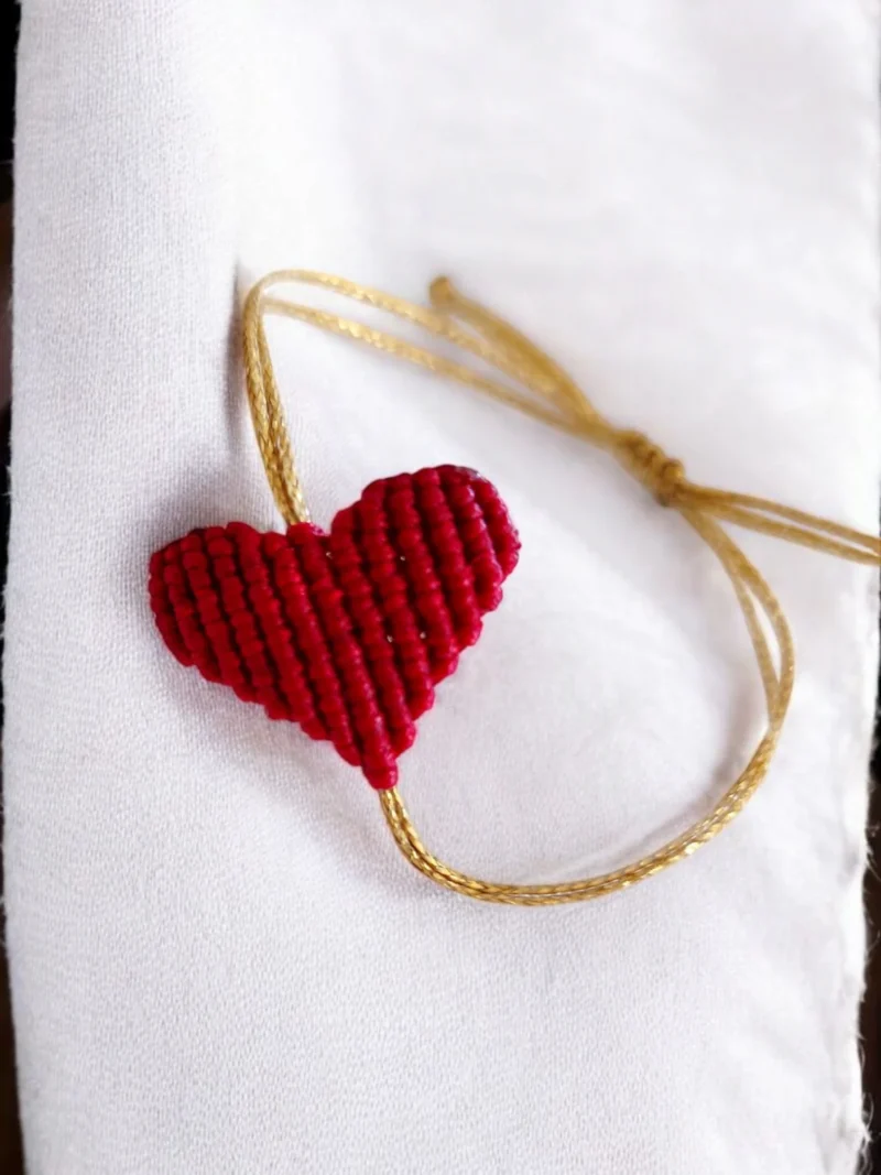 Αναδείξτε την αγάπη σε κάθε σας εμφάνιση με αυτό το υπέροχο χειροποίητο βραχιόλι μακραμέ σε σχήμα καρδιάς. Πλεγμένο με τη μοναδική τεχνική του μακραμέ, το βραχιόλι αυτό συνδυάζει λεπτομέρεια, φινέτσα και διαχρονικό συμβολισμό.