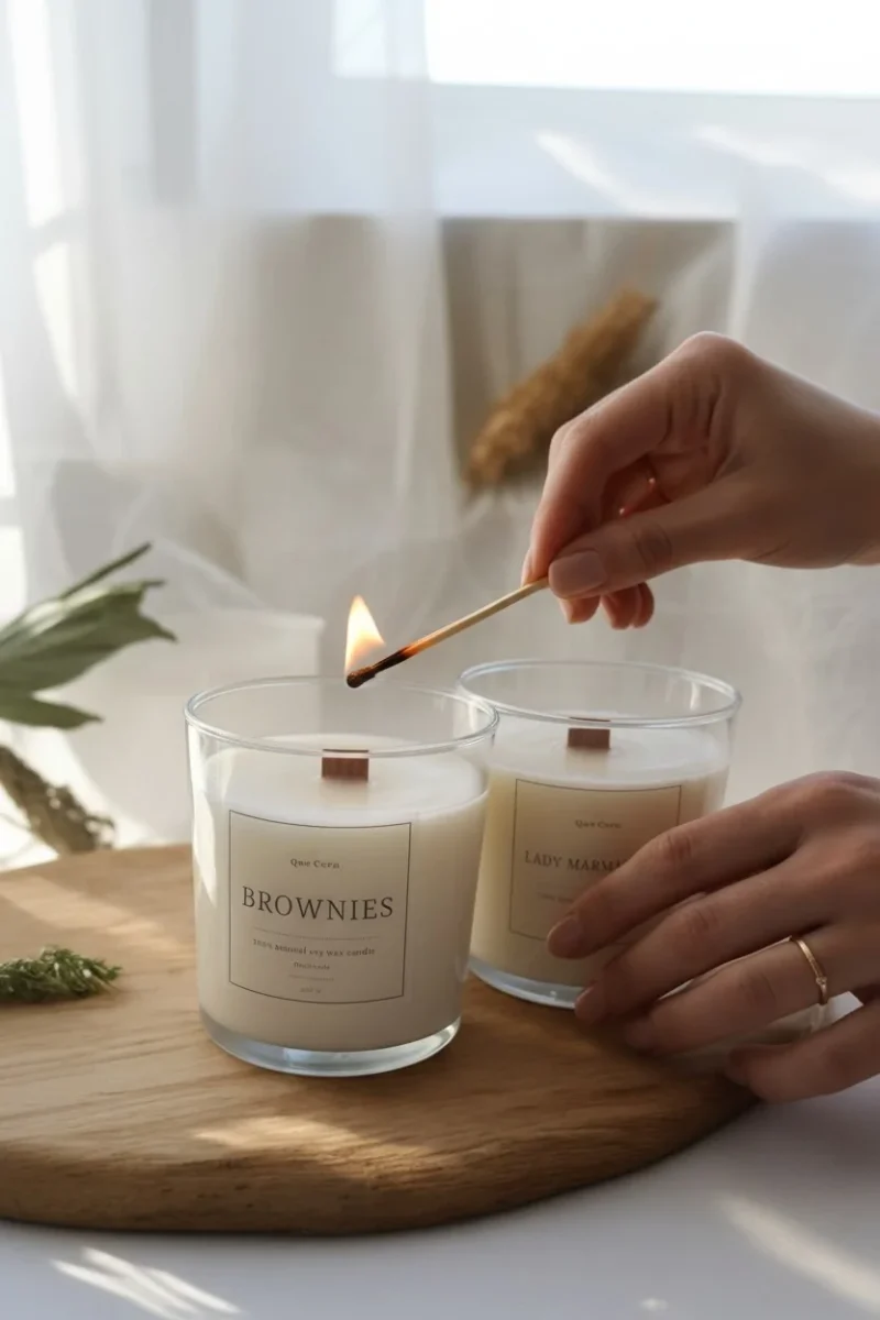 Ανακαλύψτε τη μαγεία των αρωματικών κεριών μας, κατασκευασμένα από 100% φυτικό κερί σόγιας, σε minimal γυάλινα δοχεία.