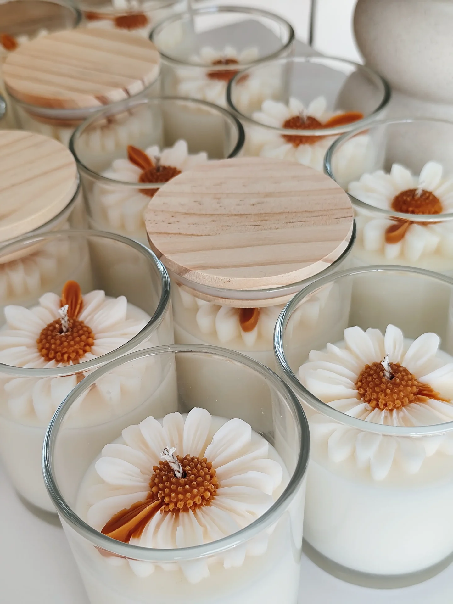 Αρωματικό κερί σε γυάλινο δοχείο με ξύλινο καπάκι μπαμπού.